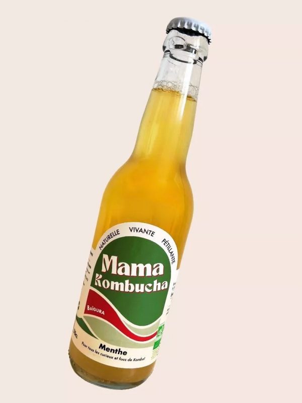 Le kombucha Baigura est une boisson désaltérante, issue d'une double fermentation. Une première fermentation est réalisée à partir de thé sencha, puis une deuxième fermentation s'opère, cette fois-ci avec des  aromatiques et des épices, en l'occurence de la menthe et du piment d'Espelette bio de notre petit producteur Mattin. Alternative au sodas, le kombucha est préparé avec amour à Bordeaux. Les kombucha de Mama Kombucha sont bio et bons à la fois. le Baigura est très désaltérant, sans doute les plus frais des Kombucha, idéal après une séance de sport... En plus, Vinzü a longtemps partagé leurs locaux...c'est vous dire si on les recommande...   Ingrédients : Eau filtrée Sucre de canne biologique Thé vert biologique Culture de Kombucha Menthe biologique Piment d’Espelette biologique de chez Vinzü   Valeur nutritionnelles pour 100ml : Energie 14 kcal Matières grasses 0 g Dont acides gras saturés 0 g Glucides 3,5 Dont sucres 2,7 g Protéines 0 g Sel 0g   Consommation : à boire très frais et à conserver entre 0 et 5° Contenance 35 cl Kombucha Baigura