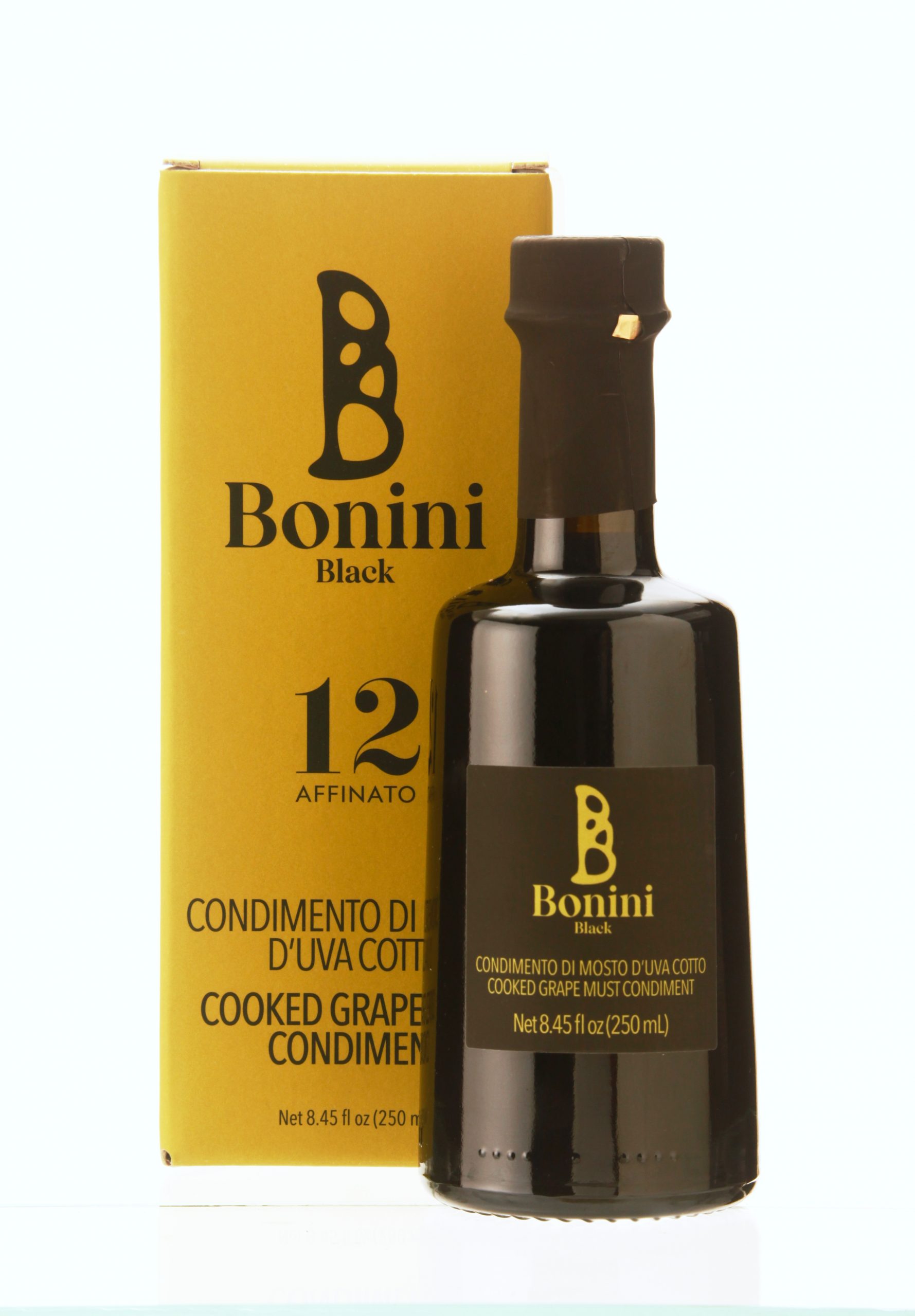 Ce vinaigre balsamique affinato produit par Bonini est un condiment de grande qualité qui a murit en fûts pendant au moins 12 ans. Il est composé exclusivement de moût de raisin, cuit en cuve ouverte, et il s'acétifie lentement de manière naturelle par passage en fûts de différentes tailles. Le vieillissement confère au condiment une couleur sombre et brillante, un parfum unique aromatique et douce, une saveur aigre-douce équilibrée, douce mais complexe. Vous pouvez l'employer à merveille sur des légumes, bien évidemment sur un risotto ou des raviolis, et même avec du potiron ! Contenance 25 cl